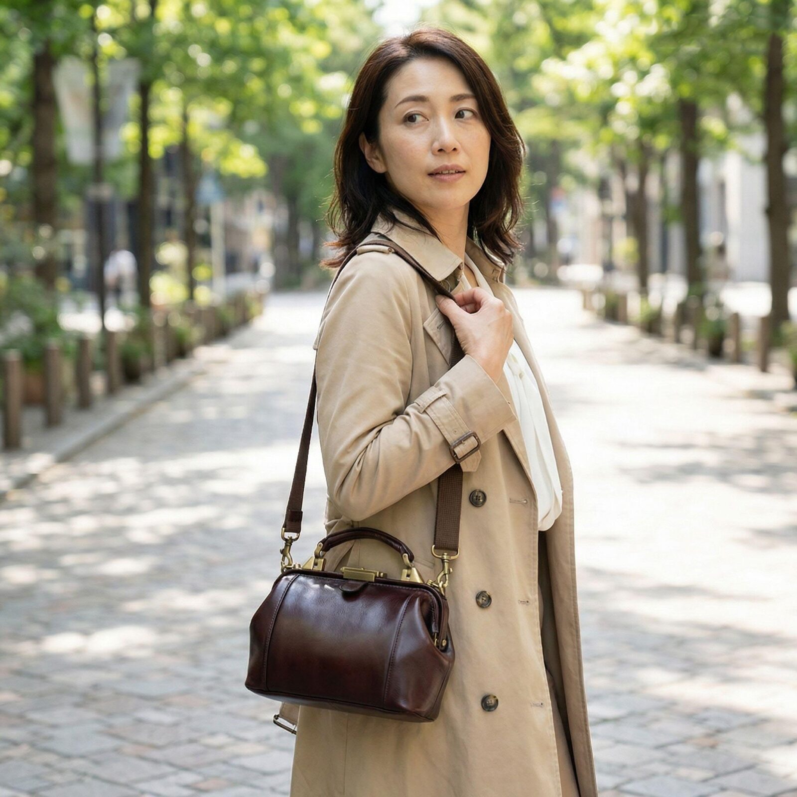 昔懐かしいレトロ感のこのミニダレスバッグは、豊岡市の熟練職人が縫製。