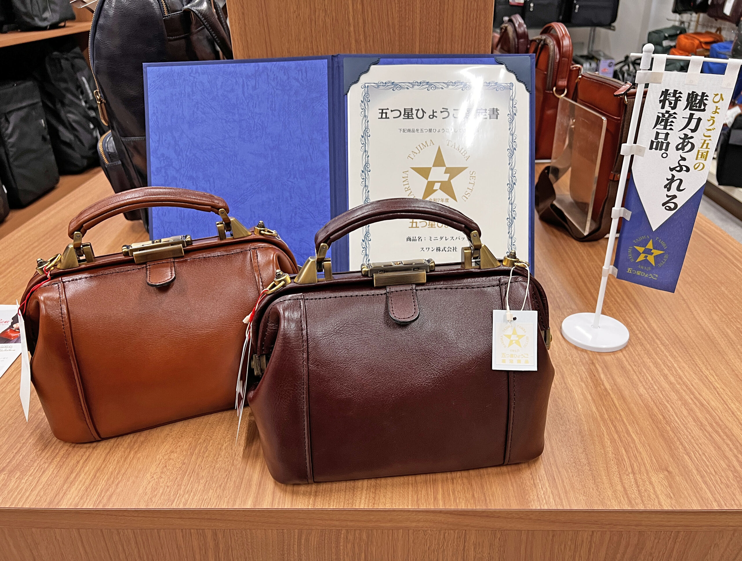 兵庫県の取組みである「令和7年度 ひょうご5つ星」に弊社の国産ミニダレスバッグ(Gem Basic)が但馬地区の選定商品として認定されました。